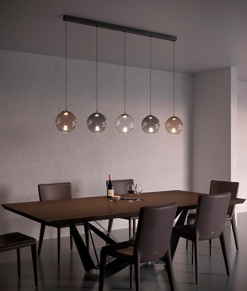 The simple, contemporary silhouettes of the PIT collection are imagined to highlight the quality of Italian blown glass. It appears elegant and delicate hung alone above a dining table and finds a pleasing harmony when declined in different sizes and shades. PIT is available as a pendant lamp, table lamp, and floor lamp. The light is diffused in a very homogeneous manner guaranteeing high lighting qualities, making it suitable for domestic, contract, and retail environments.