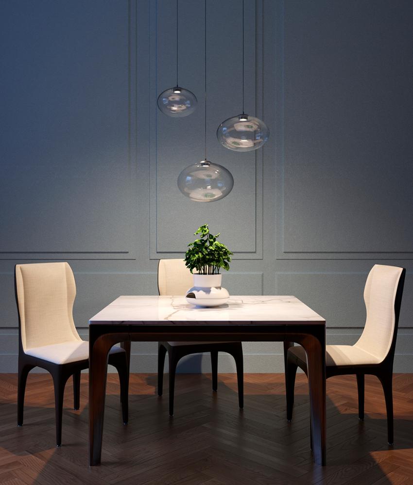 GEO is a blown glass pendant lamp handmade in Italy by Cangini e Tucci. The lamp is very simple but extremely elegant. The glass body is a sphere characterized by a slight flattening at the poles. The resulting shape is an ellipsoid perfect for those looking for a decorative lamp but at the same time very minimal and clean. The lamp is illuminated by an LED module positioned at the apex of the glass body. The high-power LED guarantees very high lighting quantity and quality and the play of light and shadow on the glass surfaces are truly unique.