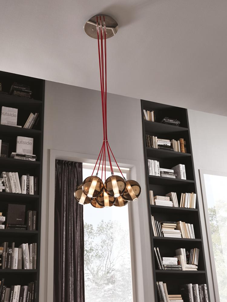 The handcrafted spheres of the Eclisse collection are available in a variety of color finishes, from traditional to metallized, and the metal frame is manufactured in a chrome finish.