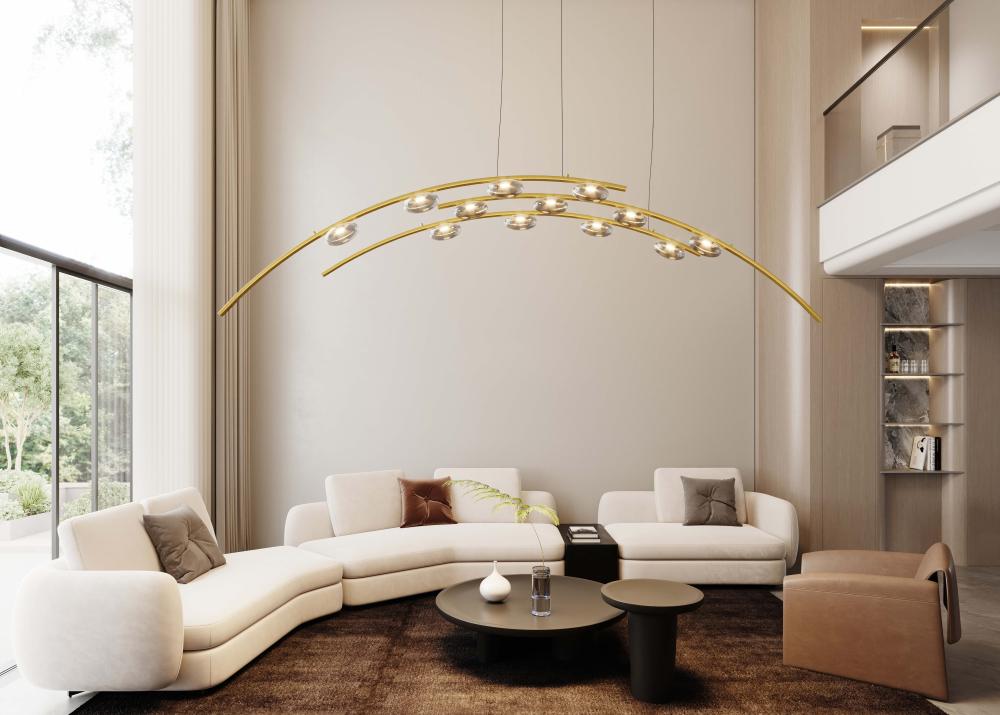 GREGH is a lighting system that brings the magic of the starry sky into our space. Its modular design evokes the complexity of constellations, offering coordinated wall, floor, and suspension solutions. Inspired by the starry mantle, this collection is made with noble and eternal materials: the thin metal structure traces orbits in space, while the glass, with its various shades, creates diffusers like small luminous planets. In this system, nodes of light float in a brilliant network that can expand vertically or horizontally, just like an astral diagram.