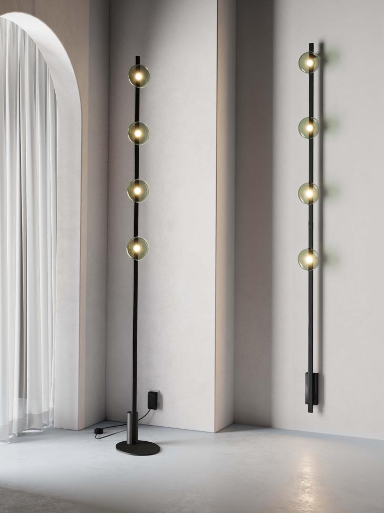 GREGH is a lighting system that brings the magic of the starry sky into our space. Its modular design evokes the complexity of constellations, offering coordinated wall, floor, and suspension solutions. Inspired by the starry mantle, this collection is made with noble and eternal materials: the thin metal structure traces orbits in space, while the glass, with its various shades, creates diffusers like small luminous planets. In this system, nodes of light float in a brilliant network that can expand vertically or horizontally, just like an astral diagram.