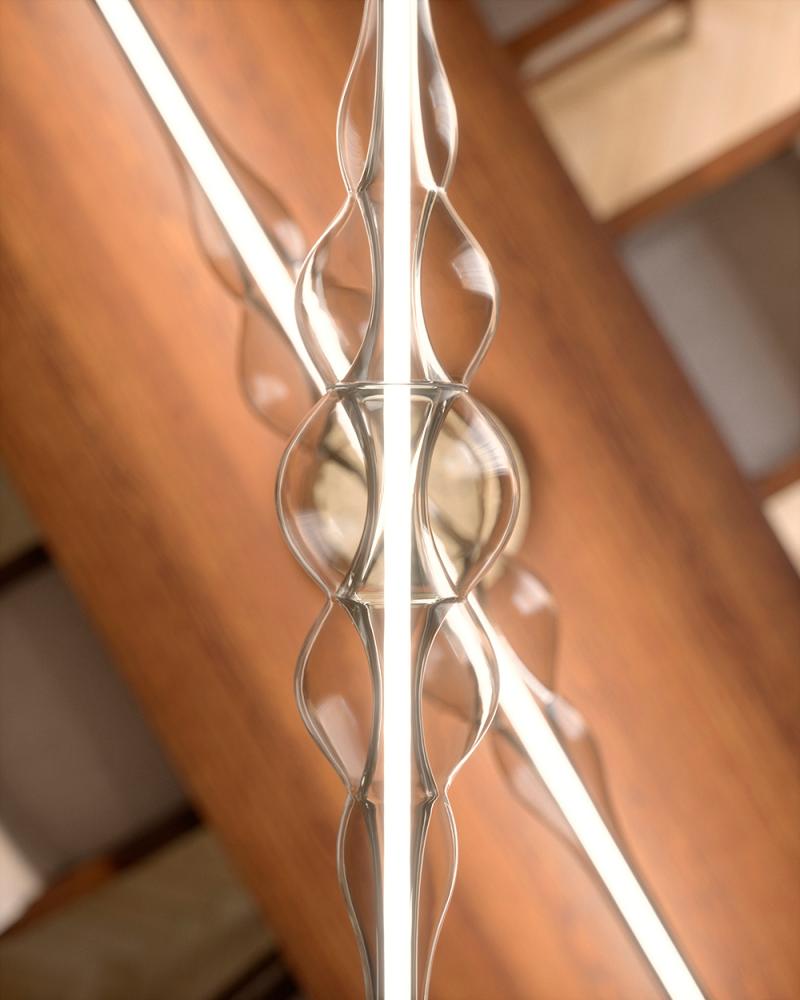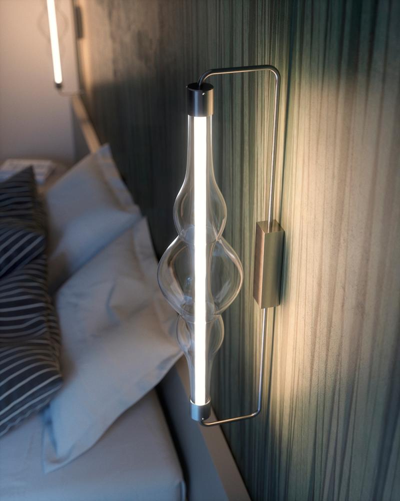 “FREQUENCY was born from the desire to enhance the essence of light. I imagined a beam of light that traveled through space. I wanted the shape of the glass to tell the movement and intensity of the energy released by this beam. Through a skilful control of the glass, thanks to the experience of Cangini e Tucci, we managed to create a sculptural object with a definite character but at the same time fluid and light, an object in which the shapes seem to interpenetrate, in which the volumes slide into each other as in a wave of living and active energy. FREQUENCY is a contemporary lamp that celebrates the art of handmade glass as only a sculpture can do”. Marcantonio